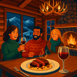 * Peter can now enjoy the dinner with his friends at Beano's Cabin Avon!