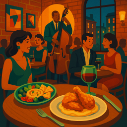 Good food, music was pretty good, not amazing. Nice vibe inside. Went for blues night - band was not bad but not great. Food was food, service good. Saw better music the next night at Bebop Restaurant.