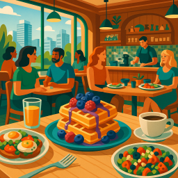 Let's say Peter has a great morning and decides to take his three friends to Cafe Medina Vancouver at 6 PM the same day.