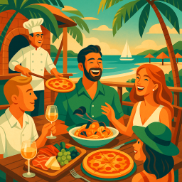 Let's say Peter has a great morning and decides to take his three friends to Casa Nonna Aruba Noord at 6 PM the same day.