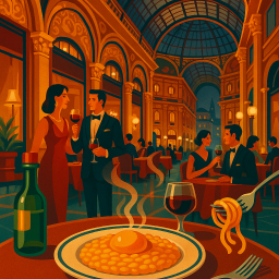 Stunning location. Refined furnishings and spectacular views. The windows of the restaurant overlook the Galleria Vittorio Emanuele from which come the lights and sounds of Milanese life from times gone by. Elegance in every detail. The menu is not a