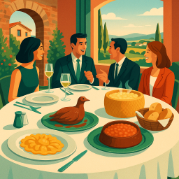 * Peter can now enjoy the dinner with his friends at Dal Pescatore Santini Runate!