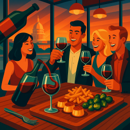 Let's say Peter has a great morning and decides to take his three friends to Eno Vino Downtown Madison at 6 PM the same day.