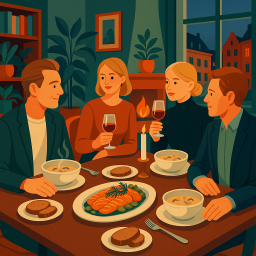 * Peter can now enjoy the dinner with his friends at Ett Hem Stockholm!
