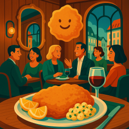 * Peter can now enjoy the dinner with his friends at Figlmüller – Restaurant Bäckerstraße Wien!