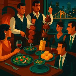 The service is always great and you never leave hungry. The market table alone is worth going for. They have so many fresh salad and fruit options. For the meal doing the churrasco experience is the way to go. You are continuously brought delicio