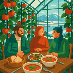 * Peter can now enjoy the dinner with his friends at Friðheimar Reykholt!