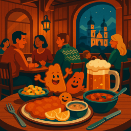 Let's say Peter has a great morning and decides to take his three friends to Huber´s im Fischerwirt Salzburg at 6 PM the same day.