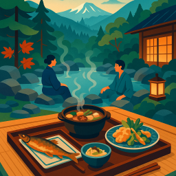 * Peter can now enjoy the dinner with his friends at Kyukamura Nyuto Onsenkyo Semboku!