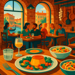 * Peter can now enjoy the dinner with his friends at La Zucca Venezia!