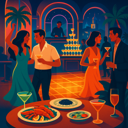 * Peter can now enjoy the dinner with his friends at LES CAVES DU ROY © Night Club SAINT-TROPEZ!