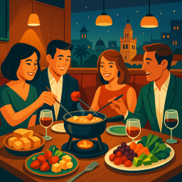 Let's say Peter has a great morning and decides to take his three friends to Melting Pot Kansas City at 6 PM the same day.