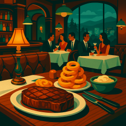 This is my favorite steakhouse I have ever been to! First of all the homemade onion rings are out of this world. When I went they had a bone in filet mignon and it was the best and most tasty steak I have ever had! The service was great, they were su