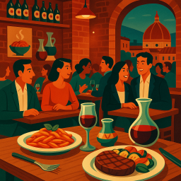 * Peter can now enjoy the dinner with his friends at Ristorante Alla Vecchia Bettola Firenze!