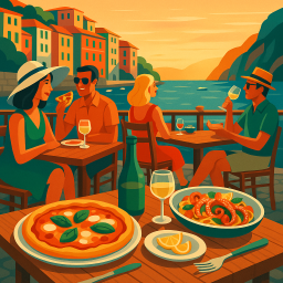 * Peter can now enjoy the dinner with his friends at Ristorante Pizzeria Da Ely Monterosso al Mare!
