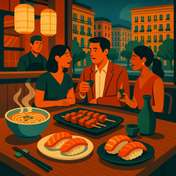 * Peter can now enjoy the dinner with his friends at sato i tanaka Barcelona!