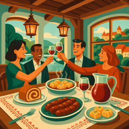 * Peter can now enjoy the dinner with his friends at Slovenian House Ljubljana!