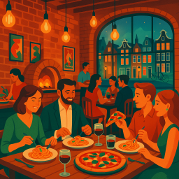 Let's say Peter has a great morning and decides to take his three friends to Toscanini Amsterdam at 6 PM the same day.