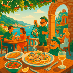 Let's say Peter has a great morning and decides to take his three friends to Trattoria Il Barcaiolo Taormina at 6 PM the same day.