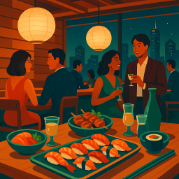 Even with reservations, there was a short wait. The sushi and drinks were excellent, and our server was knowledgeable, offering great recommendations from the menu. The restaurant was a little loud, which made it hard to hear at times, but overall it